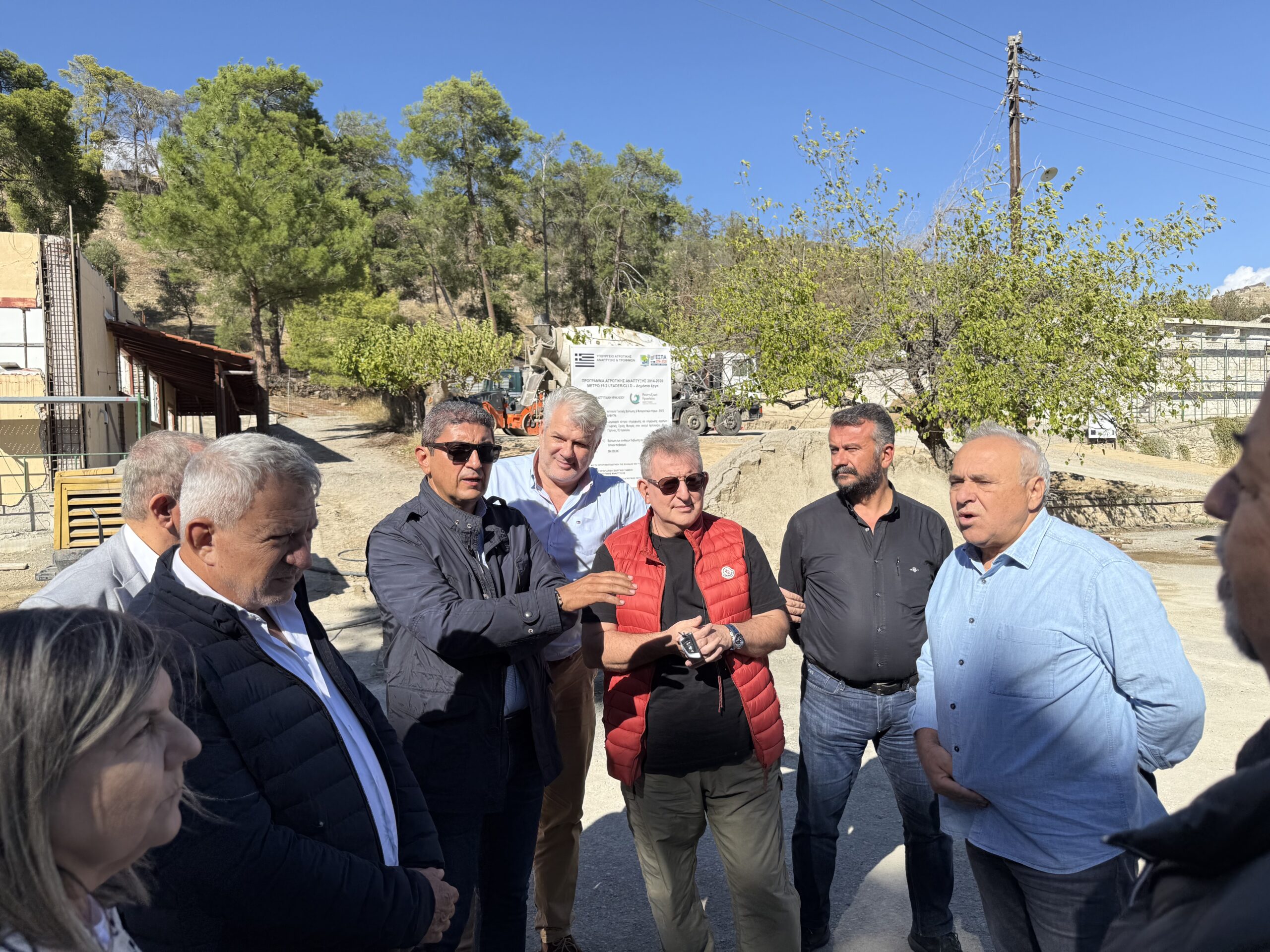 Στο σημείο συναντήθηκαν με τον εργολάβο και επιθεώρησαν τις εργασίες που γίνονται και συζήτησαν τις ελλείψεις που εμφανίζει το έργο όσον αφορά την χρηματοδότηση για να ολοκληρωθεί η υλοποίηση του.