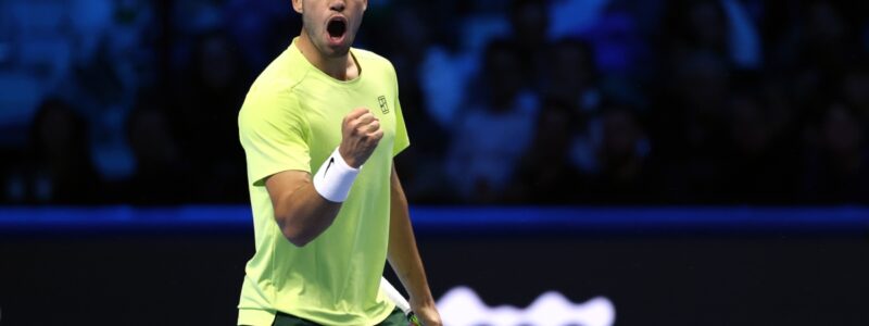 O Κάρλος Αλκαράθ πανηγύρισε τη δεύτερη νίκη του στα ATP Finals κόντρα στον Τέιλορ Φριτζ με σκορ 6-7(2), 7-5, 6-3 και πλέον βρίσκεται μία νίκη μακριά από το να τερματίσει στο Νο.1 του κόσμου στο τέλος της σεζόν.