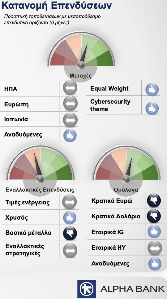 Ειδικότερα για τις επενδυτικές κατηγορίες η Alpha Bank συστήνει τα εξής:
