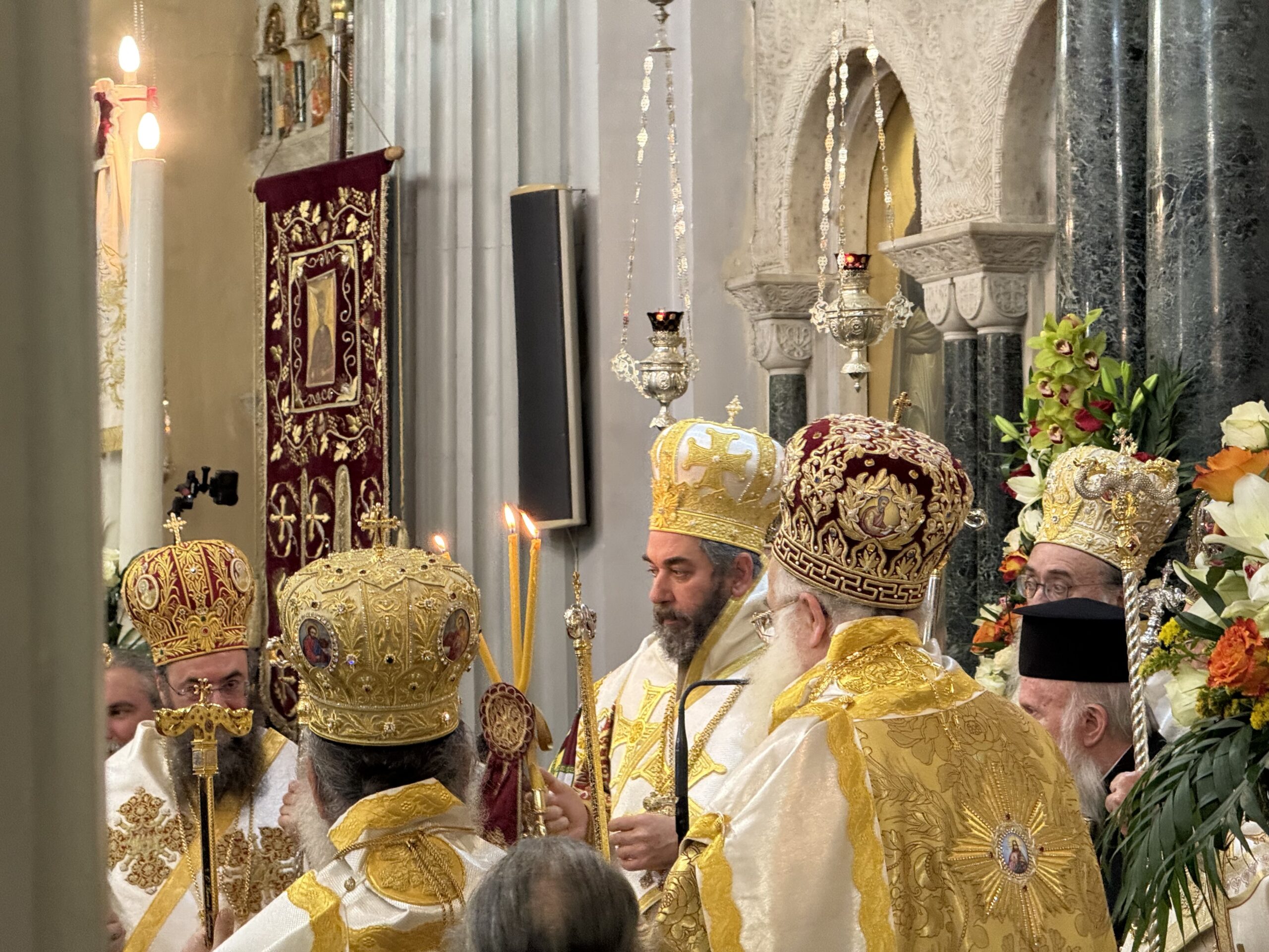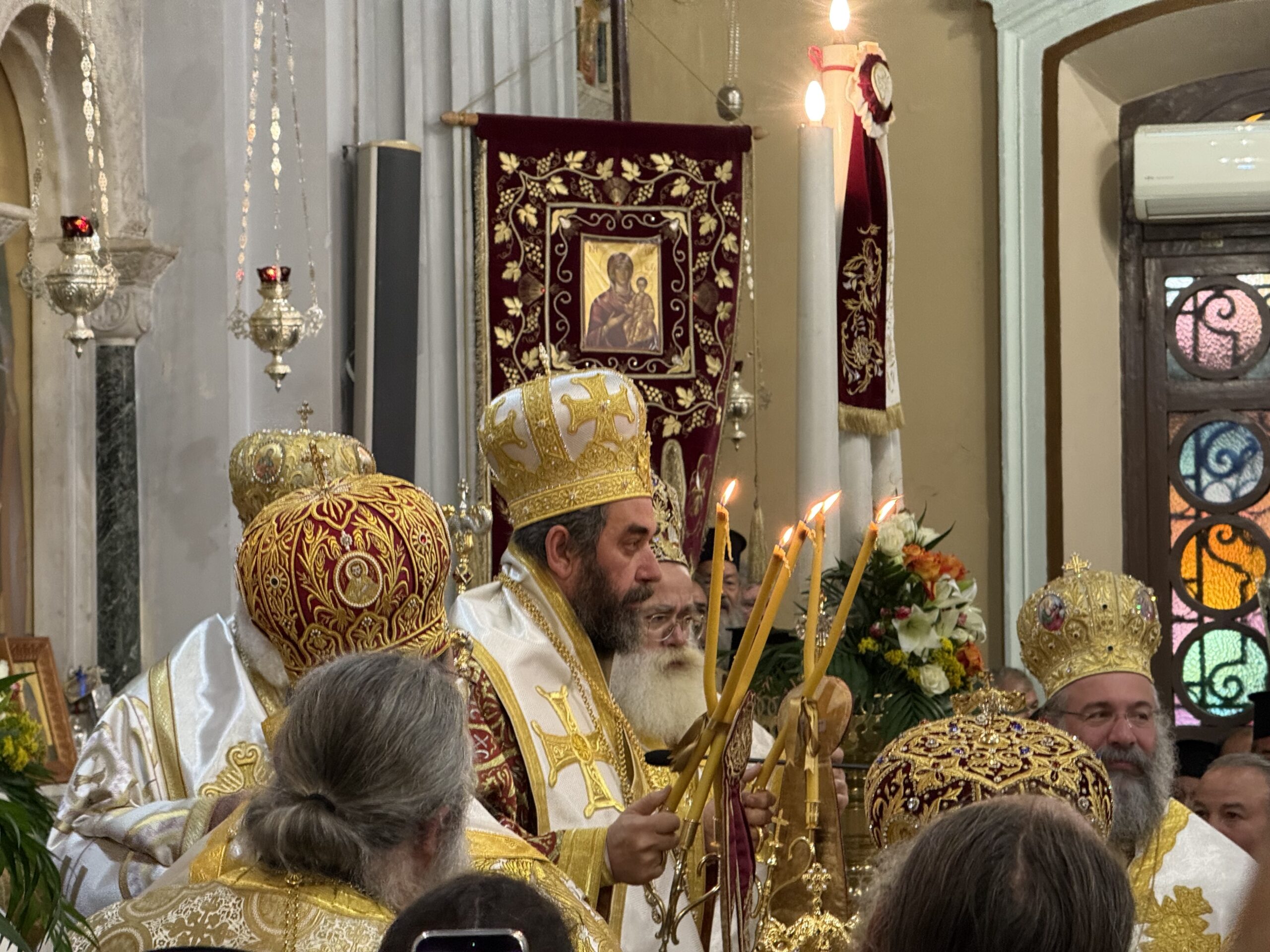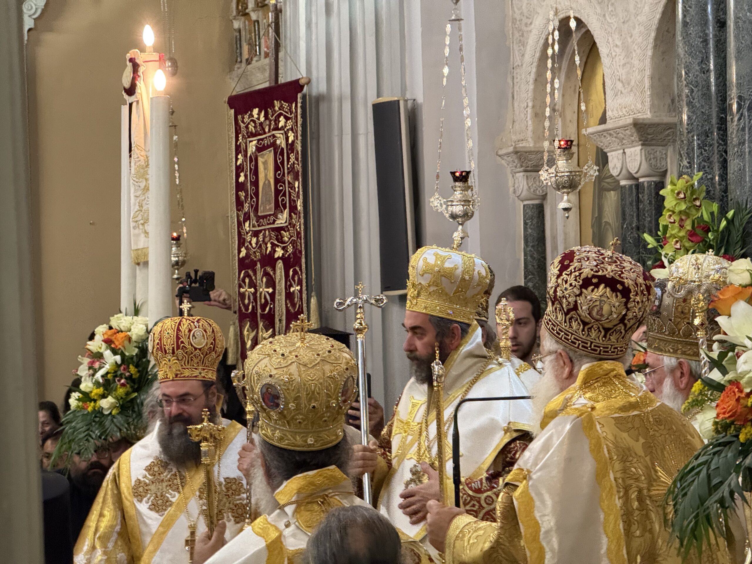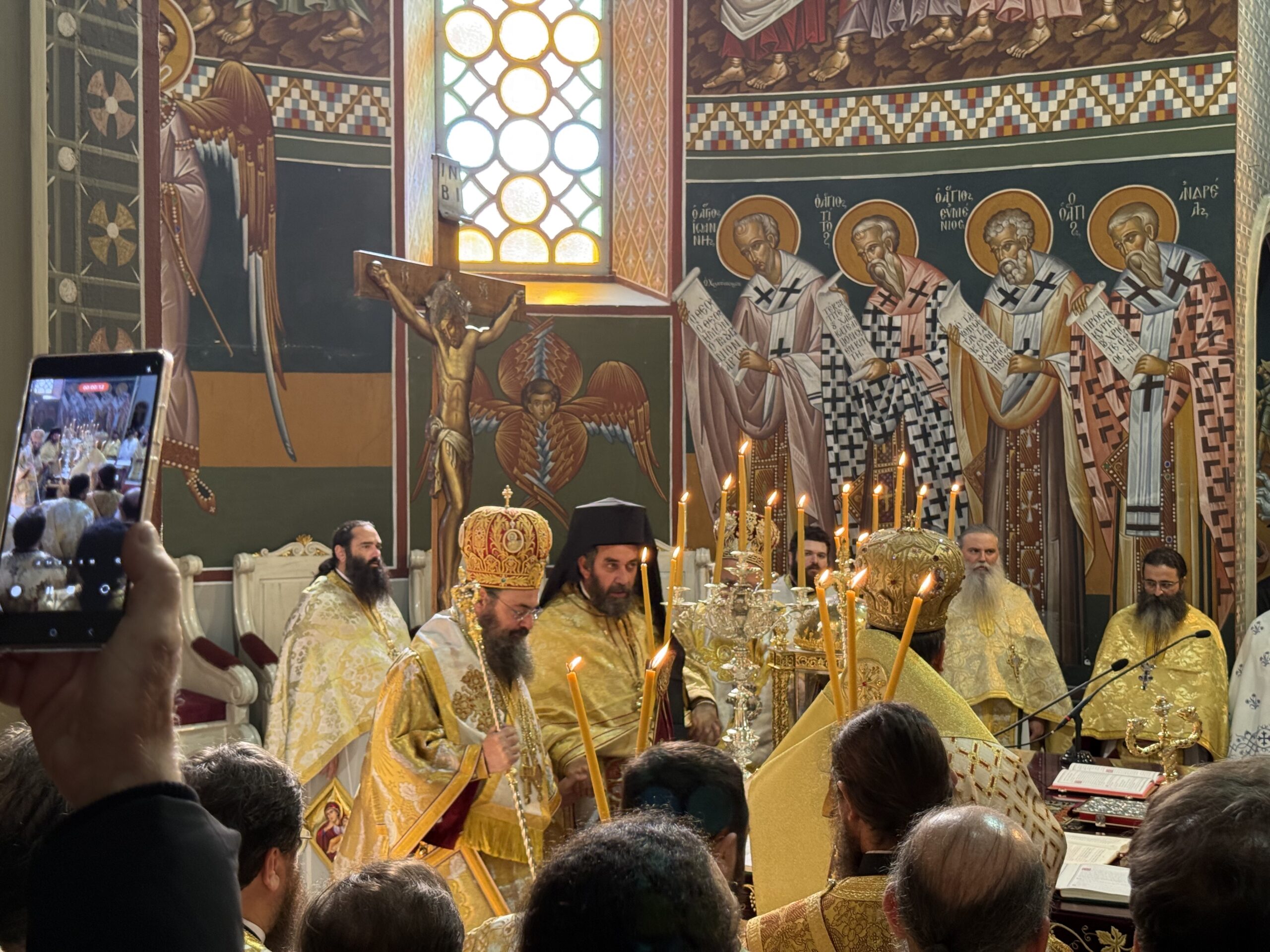 Στον Μητροπολιτικό Ναό του Αγίου Μηνά βρίσκονται – μεταξύ άλλων – η μητέρα του νέου Μητροπολίτη, Κατερίνα και τα αδέρφια Στέλιος και Δημήτρης.