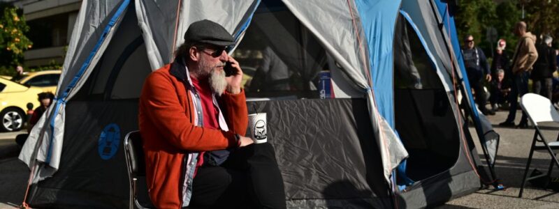 Οι ιδιοκτήτες ταξί έχουν στήσει σκηνή έξω από το υπουργείο Μεταφορών αποφασισμένοι να παραμείνουν εκεί μέχρι να εισακουστούν τα αιτήματά τους.