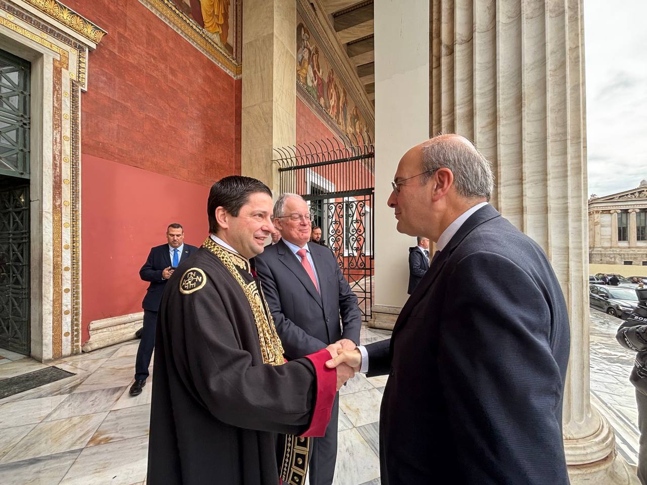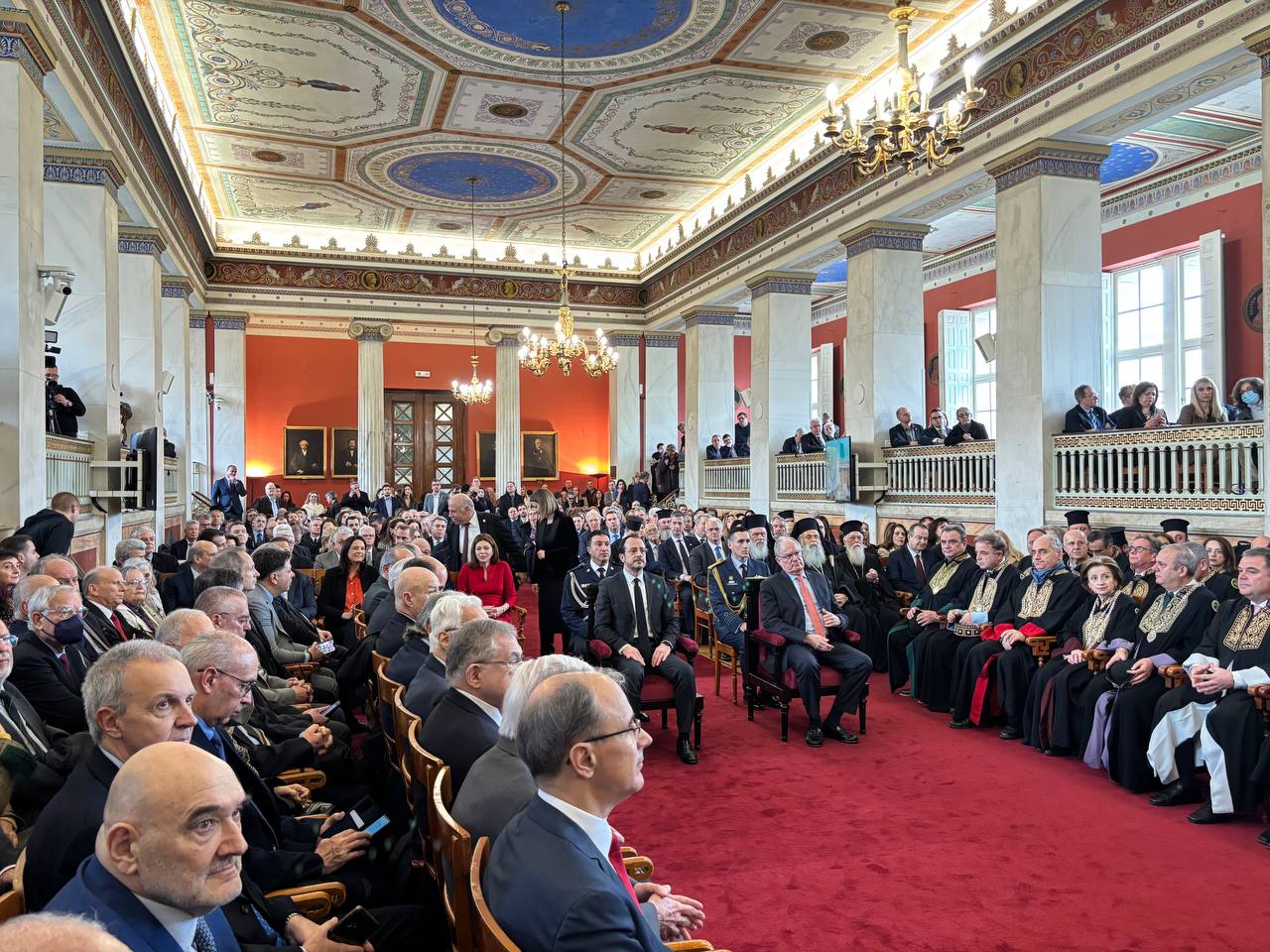 Την εκδήλωση τίμησαν, επίσης, με την παρουσία τους, μεταξύ άλλων, εκ μέρους της Ελληνικής Κυβέρνησης η Σοφία Ζαχαράκη, Εκπρόσωπος του Προέδρου της Ελληνικής Κυβέρνησης και Υπουργός Παιδείας, Θρησκευμάτων και Αθλητισμού, ο Πρωθυπουργός της Δημοκρατίας της Σερβίας και Επίτιμος Διδάκτορας του ΕΚΠΑ Djuro Macut, ο Πρόεδρος της Βουλής των Ελλήνων Νικήτας Κακλαμάνης, ο Αντιπρόεδρος της Κυβέρνησης Κωστής Χατζηδάκης, ο Αντιπρόεδρος της Κυβέρνησης της Δημοκρατίας της Σερβίας Ivica Dačićο, ο πρώην Πρόεδρος της Δημοκρατίας και επίτιμος καθηγητής του Πανεπιστημίου Αθηνών Προκόπιος Παυλόπουλος, ο πρώην Πρωθυπουργός καθηγητής Λουκάς Παπαδήμος, ο Νίκος Δένδιας, Υπουργός Εξωτερικών, ο Άδωνης Γεωργιάδης, Υπουργός Υγείας, η Νίκη Κεραμέως, Υπουργός Εργασίας, ο Τάκης Θεοδωρικάκος, Υπουργός Ανάπτυξης, ο Κωνσταντίνος Τσιάρας, Υπουργός Αγροτικής Ανάπτυξης και Τροφίμων, ο Σταύρος Παπασταύρου, Υπουργός Περιβάλλοντος και Ενέργειας, η Λίνα Μενδώνη, Υπουργός Πολιτισμού, η Δόμνα Μιχαηλίδου, Υπουργός Κοινωνικής Συνοχής και Οικογένειας, ο Zoran Gajić, Υπουργός Αθλητισμού της Κυβέρνησης της Δημοκρατίας της Σερβίας, η Ειρήνη Αγαπηδάκη, Αναπληρώτρια Υπουργός Υγείας, ο Κωνσταντίνος Κυρανάκης, Αναπληρωτής Υπουργός Μεταφορών, ο Μάριος Θεμιστοκλέους, Υφυπουργός Υγείας, ο Γεώργιος Κώτσηρας, Υφυπουργός Εθνικής Οικονομίας και Οικονομικών, η Α.Ε. ο Πρέσβης της Κυπριακής Δημοκρατίας κ. Σταύρος Αυγουστίδης, ο Επίτιμος Πρέσβης της Κυπριακής Δημοκρατίας Κυριάκος Κενεβέζος, ο Γεώργιος Τσούνης, πρώην Πρέσβης των ΗΠΑ, ο Γιάννης Αντωνίου, Αναπληρωτής Κυβερνητικός Εκπρόσωπος της Κυβέρνησης της Κυπριακής Δημοκρατίας, ο Μητροπολίτης Λαοδικείας κ. Θεοδώρητος, Διευθυντής Εκπροσωπήσεως του Οικουμενικού Πατριαρχείου εν Αθήναις, ο Μητροπολίτης Φθιώτιδος κ. Συμεών, ο Μητροπολίτης Περιστερίου και καθηγητής του Πανεπιστημίου Αθηνών Γρηγόριος, ο Πρωτοπρεσβύτερος Κυπριανός Κουντούρης, Διευθυντής Θεολογικής Σχολής Εκκλησίας Κύπρου, η Παρασκευή Δραμαλιώτη, Γενική Γραμματέας Συντονισμού της Προεδρίας της Κυβέρνησης, η Μαρία Μυρογιάννη, Γενική Γραμματέας Απόδημου Ελληνισμού και Δημόσιας Διοίκησης η Θεώνη Αλαμπάση, Γενική Γραμματέας Χρηματοπιστωτικού Τομέα και Διαχείρισης Ιδιωτικού Χρέους, ο Άρης Αγγελής, Γενικός Γραμματέας Στρατηγικού Σχεδιασμού, ο Σπυρίδων Σταθούλης, Γενικός Γραμματέας Υποδοχής Αιτούντων Άσυλο, ο Δημήτριος Τερζής, Γενικός Γραμματέας Έρευνας και Καινοτομίας, ο Καθηγητής Ναπολέων Μαραβέγιας, Γενικός Γραμματέας Εμπορίου, ο Αντώνιος Φιλίππης, Γενικός Γραμματέας Αγροτικής Πολιτικής και Διεθνών Σχέσεων. Παρόντες ήταν επίσης οι Βουλευτές Χρήστος Στυλιανίδης, Κώστας Σκρέκας, Αθανάσιος Παπαθανάσης, Αριστοτέλης Σπάνιας, Μαριλένα Σούκουλη-Βιλιάλη, Όλγα Γεροβασίλη, Διονύσιος Σταμενίτης, Δημήτριος Κούβελας, Τάσος Χατζηβασιλείου, Αγγελική Δεληκάρη, Σταύρος Παπασωτηρίου, Θωμαΐς Οικονόμου, Δρ. Μιχάλης Χουρδάκης, Μάξιμος Σενετάκης, Άννα Μάνη-Παπαδημητρίου, Ανδρέας Βορύλλας, Ζέττα Μ. Μακρή, Νεοκλής Κρητικός, Μιχάλης Γ. Παπαδόπουλος, Μαρίνα Κοντοτόλη, Νικόλαος Βρεττός, Άγγελος Συρίγος, Ιωάννης Γιώργος, Διαμαντής Γκολιδάκης, Ιωάννης Ανδριανός, Γεώργιος Στύλιος καθώς και ο πρώην Αντιπρόεδρος της Κυβέρνησης καθηγητής Ευάγγελος Βενιζέλος. Ο πρώην Πρύτανης του ΕΚΠΑ, επίτιμος καθηγητής και ακαδημαϊκός Μιχαήλ Σταθόπουλος, ο πρώην Πρύτανης του ΕΚΠΑ και επίτιμος καθηγητής Γεώργιος Μπ