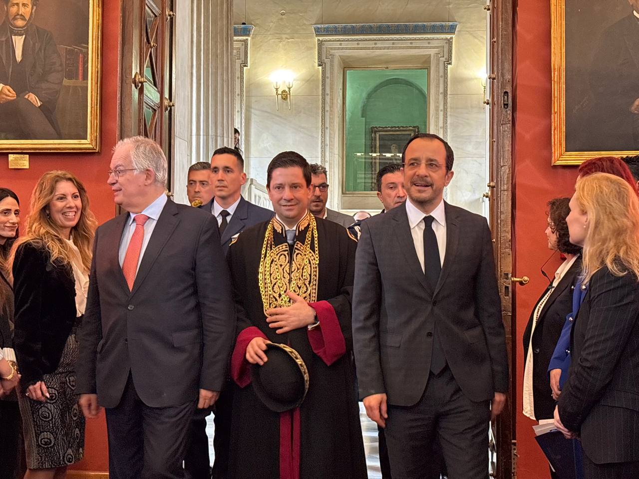 »Πέραν της χαράς και της υπερηφάνειας, αισθάνομαι και ιδιαίτερη τιμή και συγκίνηση, γιατί έχω το προνόμιο να εκπροσωπώ, στη σεμνή αυτή τελετή που φιλοξενείται στο αρχαιότερο ανώτατο εκπαιδευτικό ίδρυμα της σύγχρονης Ελλάδας, την Κυπριακή Πολιτεία και τον κυπριακό λαό».