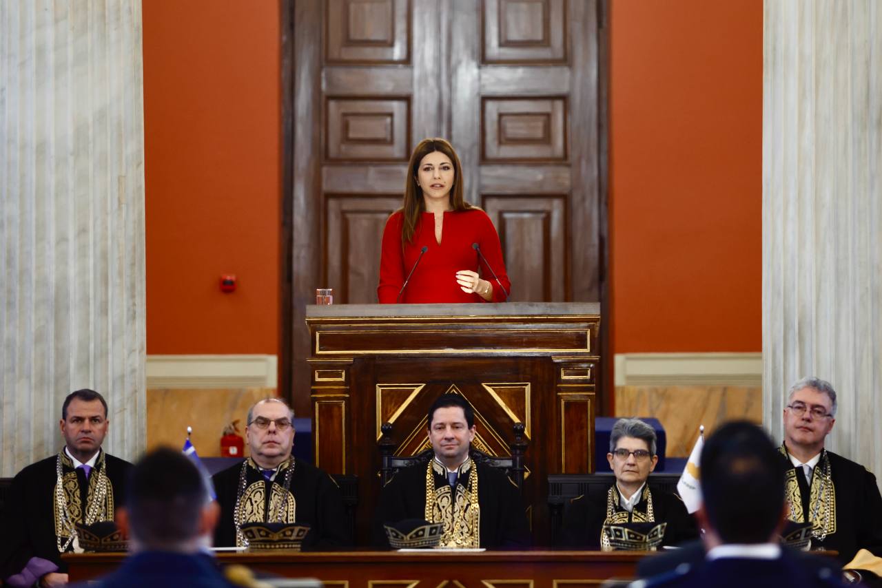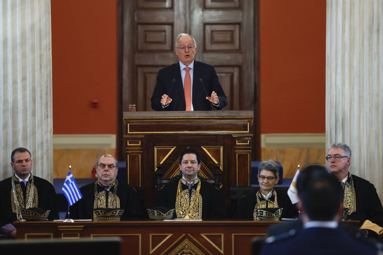 «Πριν από την όποια άλλη αναφορά επιθυμώ να εκφράσω τη θλίψη μου για την απώλεια της Ελένης Γλύκατζη-Αρβελέρ, της μεγάλης Ελληνίδας, Ελληνίδας του κόσμου, που υπηρέτησε τα γράμματα, την επιστήμη της Ιστορίας, αλλά, κυρίως, υπηρέτησε την αλήθεια. Από το βήμα του Πανεπιστημίου Αθηνών, στο οποίο φοίτησε και η ίδια, μεταφέρω εκ μέρους της Κυβέρνησης της Κυπριακής Δημοκρατίας και του κυπριακού λαού τα συλλυπητήρια μας» ανέφερε κατά τον χαιρετισμό του μεταξύ άλλων.