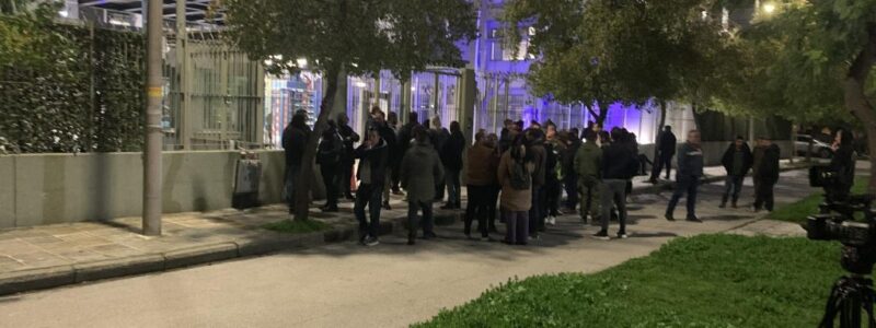 Αντιπροσωπεία αγροτών από το μπλόκο της Νίκαιας βρέθηκε έξω από το κτίριο της Αστυνομικής Διεύθυνσης Λάρισας, ζητώντας ενημέρωση για τους τρεις συλληφθέντες των σημερινών επεισοδίων.