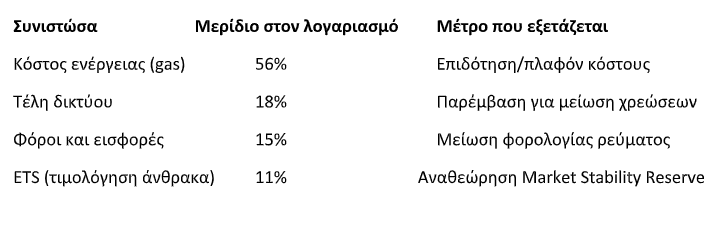 Η Πρόεδρος της Ευρωπαϊκής Επιτροπής Ούρσουλα φον ντερ Λάιεν μάλιστα ανέλυσε τέσσερις συνιστώσες της τελικής τιμής ρεύματος και τα αντίστοιχα πεδία παρέμβασης: