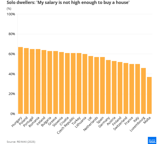 Πιο συγκεκριμένα, το 37% των ατόμων που ζουν μόνοι πιστεύουν πλέον ότι δεν θα μπορέσουν ποτέ να αγοράσουν σπίτι, σύμφωνα με το euronews.