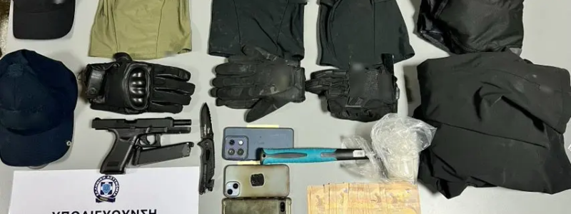Στη συνέχεια, οι κατηγορούμενοι βγήκαν από το όχημα, καλύπτοντας τα χαρακτηριστικά των προσώπων τους και προκειμένου να ματαιώσουν τον αστυνομικό έλεγχο προέταξαν, σφυρί, μαχαίρι και αεροβόλο όπλο, ωστόσο ακινητοποιήθηκαν και μετά από έρευνα βρέθηκαν επιπλέον στην κατοχή τους και κατασχέθηκαν: