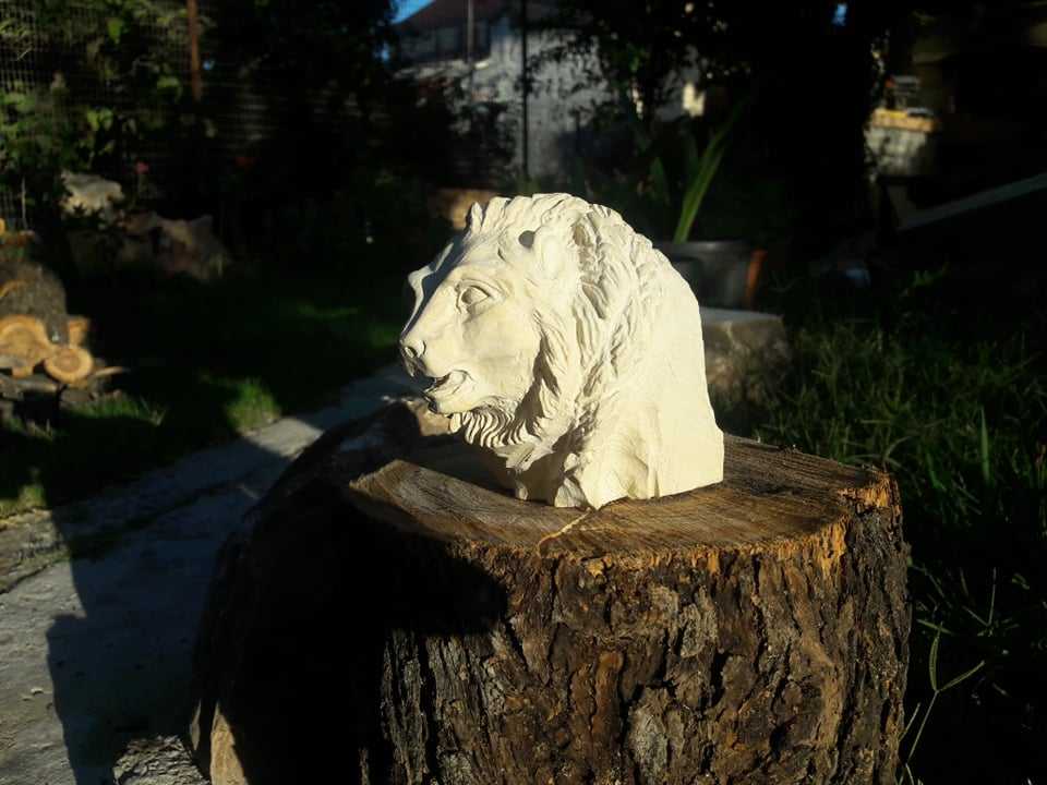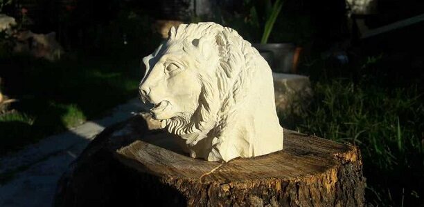 Κεφαλή λέοντος σμιλευμένη σε πέτρα από τον Γιάννη Κοντό
