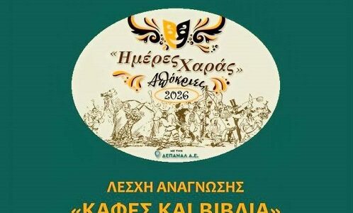 Οι «Ημέρες Χαράς 2026» της ΔΕΠΑΝΑΛ Α.Ε. ολοκληρώνονται την Πέμπτη 19 Φεβρουαρίου, στις 18:00 στο Μαρίνα Cafe’ Restaurant, με τη Λέσχη Ανάγνωσης «Καφές και Βιβλία». Θέμα της όμορφης συνάντησης, λίγο πριν κλείσει το Τριώδιο είναι «Η μάσκα στην Κρητική λαϊκή παράδοση και το «Κρητικό Πανόραμα» με τον συγγραφέα – λαογράφο Γιώργο Σταματάκη.