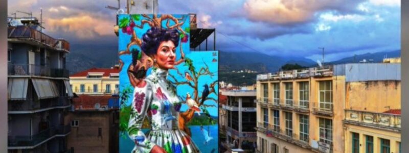 Στον πλαϊνό τοίχο μιας πολυώροφης πολυκατοικίας στο κέντρο της Καλαμάτας, μια γυναικεία μορφή τεράστιας κλίμακας μετατρέπει τον αστικό ιστό σε πεδίο μνήμης, συμβολισμών και σύγχρονης πολιτιστικής αυτοπεποίθησης. Είναι η Μαρία Κάλλας, η οποία δεν «κοιτά» απλώς την πόλη από ψηλά. Την ενσαρκώνει.