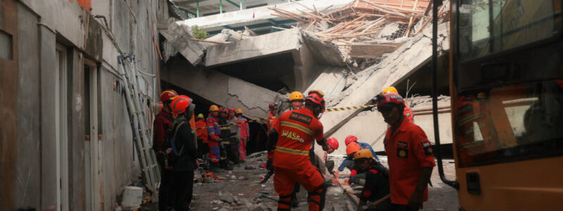 Η κατάρρευση συνέβη στις 29 Σεπτεμβρίου, όταν το κτίριο έπεσε πάνω σε εκατοντάδες μαθητές — κυρίως αγόρια ηλικίας 12 έως 19 ετών — στο σχολείο Al Khoziny, ηλικίας 100 ετών, που βρίσκεται στο Σιντοάρτζο, στην ανατολική Ιάβα. Σύμφωνα με τις αρχές, μόνο ένας μαθητής διέφυγε χωρίς τραυματισμούς, ενώ 97 μεταφέρθηκαν σε νοσοκομεία και έλαβαν εξιτήριο. Άλλοι έξι τραυματίστηκαν σοβαρά και παρέμειναν νοσηλευόμενοι την Κυριακή.