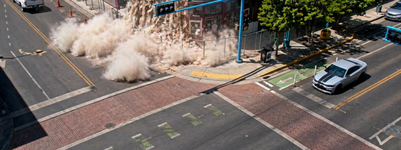 Η κατάρρευση προκάλεσε πυκνό σύννεφο σκόνης που κάλυψε το πεζοδρόμιο της περιοχής, όπως ανακοίνωσε ο δήμος της πόλης.