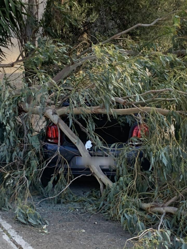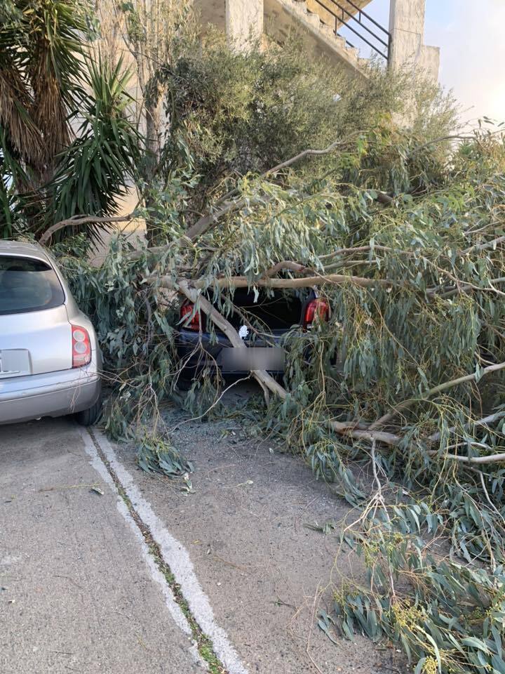Στην περιοχή του Ξεροπόταμου, δέντρο έπεσε πάνω σε σταθμευμένα αυτοκίνητα, προκαλώντας υλικές ζημιές.