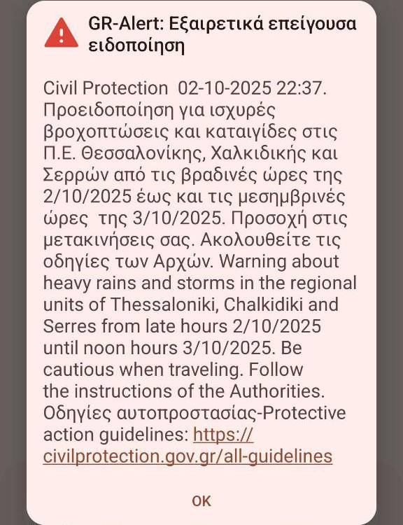 Κακοκαιρία: Μήνυμα του 112 σε Θεσσαλονίκη, Χαλκιδική και Σέρρες – Αναμένονται ισχυρές βροχοπτώσεις και καταιγίδες - antilalospress.gr