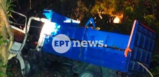 Η σφοδρή σύγκρουση είχε ως αποτέλεσμα το φορτηγό να εκτραπεί της πορείας του και να καταλήξει εκτός δρόμου, μέσα σε παρακείμενο χαντάκι με συνέπεια ο οδηγός να εγκλωβιστεί στην καμπίνα του οχήματος.