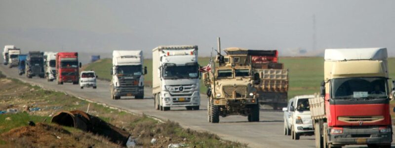 Δημοσιογράφοι του Γαλλικού Πρακτορείου είδαν μια φάλαγγα αποτελούμενη από δεκάδες φορτηγά, φορτωμένα με τεθωρακισμένα και προκατασκευασμένα κτίσματα, να κατευθύνεται προς τα σύνορα με το Ιράκ.