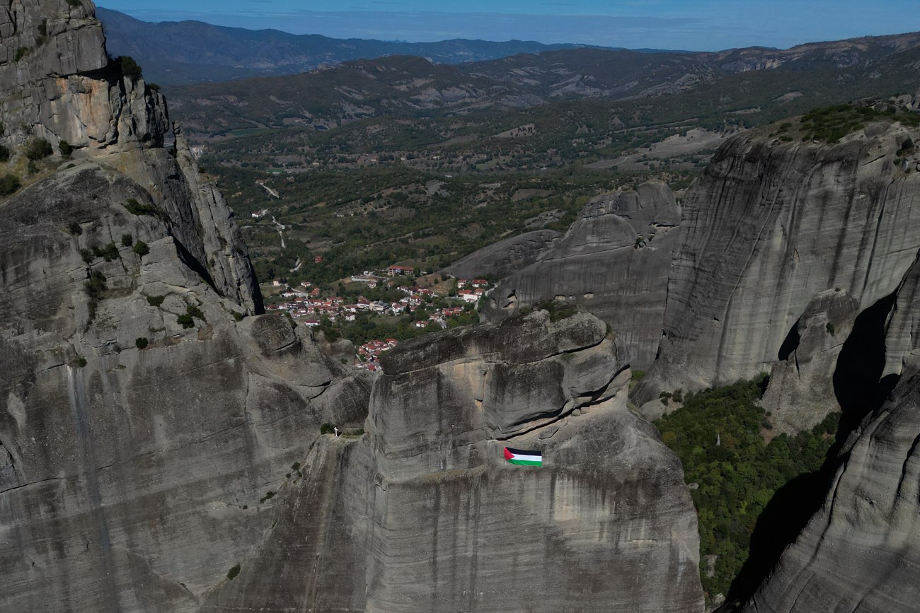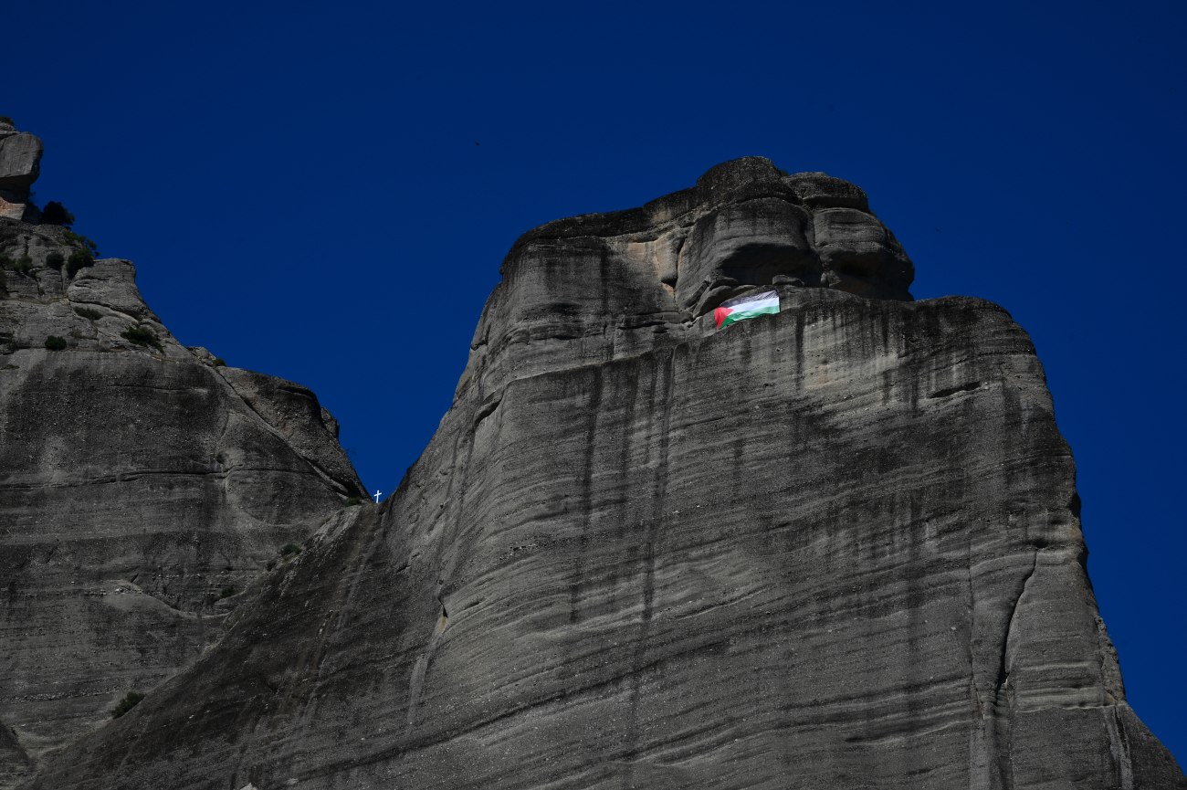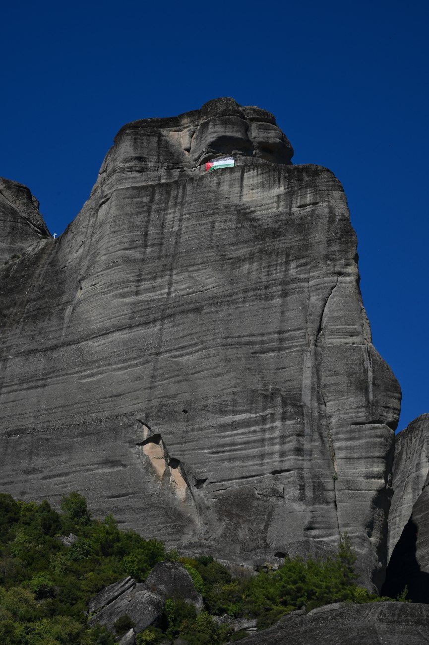 Μια σημαία της Παλαιστίνης βρίσκεται πλέον στα Μετέωρα [βίντεο]