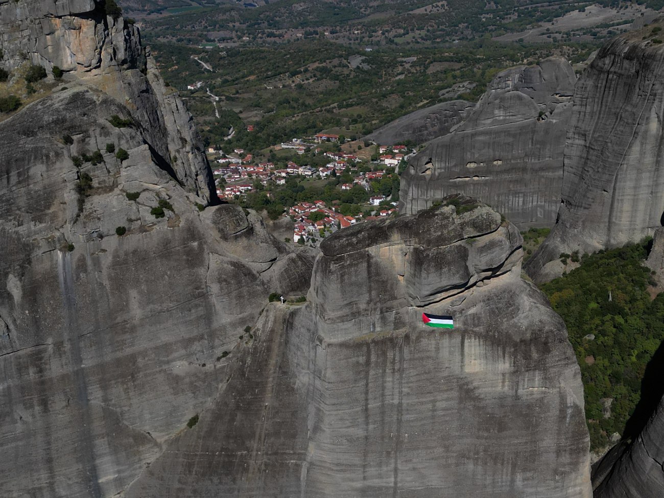 Η παλαιστινιακή σημαία στα Μετέωρα. pic.twitter.com/8JG0F6QKZL