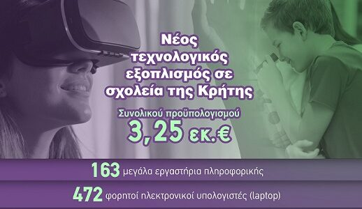 Νέος τεχνολογικός εξοπλισμός σε σχολεία της Κρήτης με χρηματοδότηση 3,25 εκατ. ευρώ από την Περιφέρεια Κρήτης