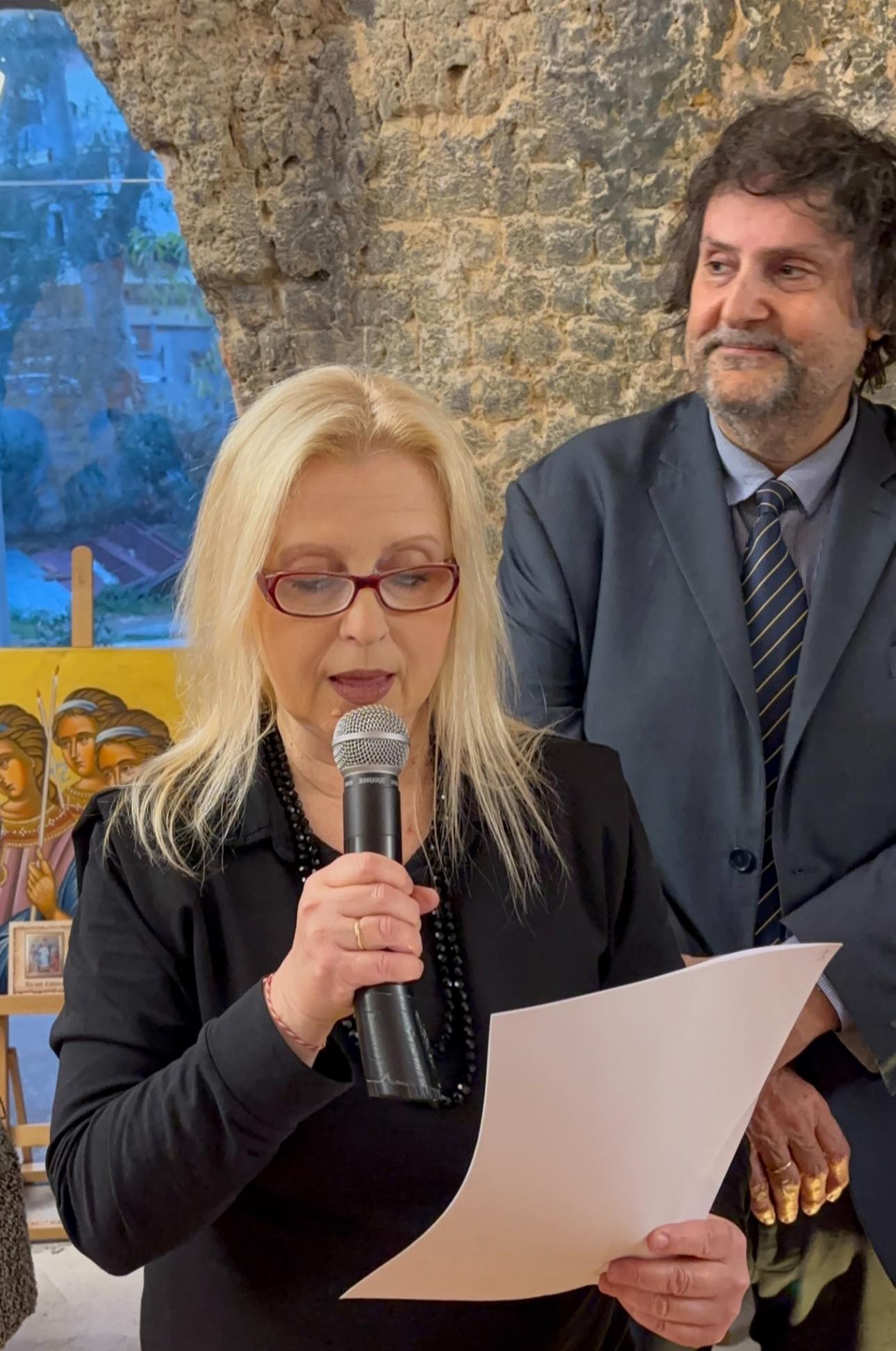 Η συντονίστρια και καθοδηγητής στην ART WAY κα Αφροδίτη Δρακοπούλου Σάρδη με τον κριτικό έργων Τέχνης κο Λεόντιο Πετμεζά