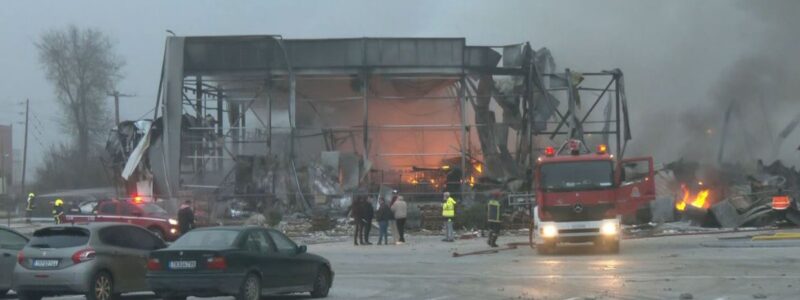 Όπως μεταδίδει η ΕΡΤ, δύο τμήματα φλέγονται από τις 04:00 τα ξημερώματα. Το ωστικό κύμα έκοψε στα δύο το εργοστάσιο, αφού κατέρρευσε τοίχος και στην συνέχεια έπεσε η οροφή.