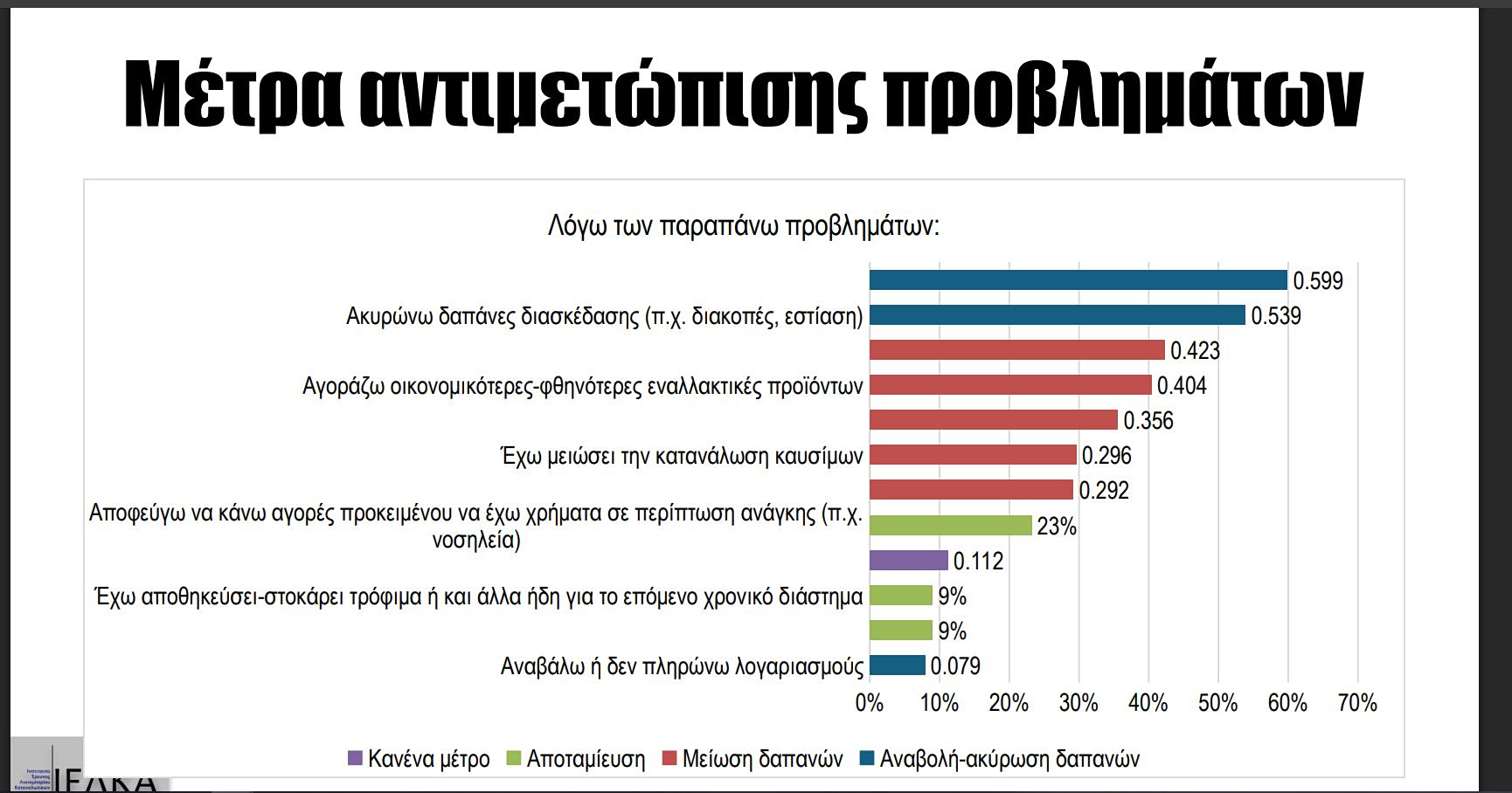 Ελαφρώς διαφοροποιημένα σε σύγκριση με την έρευνα της Nielsen είναι τα ευρήματα του ΙΕΛΚΑ. Οι καταναλωτές κλήθηκαν να απαντήσουν τι αισθήματα τους προκαλoύν ο πόλεμος στη Μέση Ανατολή, ο πόλεμος στην Ουκρανία και η περιβαλλοντική κρίση.