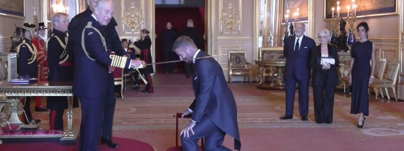 Σε μια τελετή που πραγματοποιήθηκε στο Κάστρο του Ουίνδσορ, ο βασιλιάς Κάρολος Γ΄ χτύπησε τους ώμους του Ντέιβιντ Μπέκαμ με τη λεπίδα ενός σπαθιού και ο αποκαλούμενος από τους θαυμαστές του και τον Τύπο “Becks”… μεταμορφώθηκε σε σερ Ντέιβιντ Μπέκαμ.