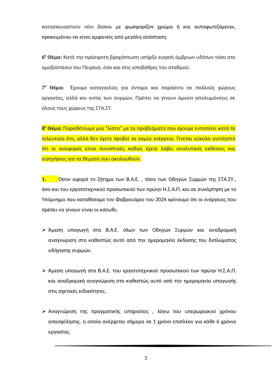 «Σήμερα στη ΣΤΑ.ΣΥ. υπάρχει σοβαρότατο πρόβλημα με την έλλειψη προσωπικού, ενώ το υπάρχον προσωπικό φέρει σημαντική κόπωση, εργάζεται πολλές χιλιάδες ώρες επιπλέον του κανονικού ωραρίου, δεν λαμβάνει τις προβλεπόμενες ημέρες άδειας ή και ανάπαυσης και παράλληλα, σε αρκετά μεγάλο ποσοστό είναι υπέργηρο για τη θέση εργασίας που κατέχει» αναφέρει το υπόμνημα, όπως δημοσιεύτηκε στον Ριζοσπάστη.
