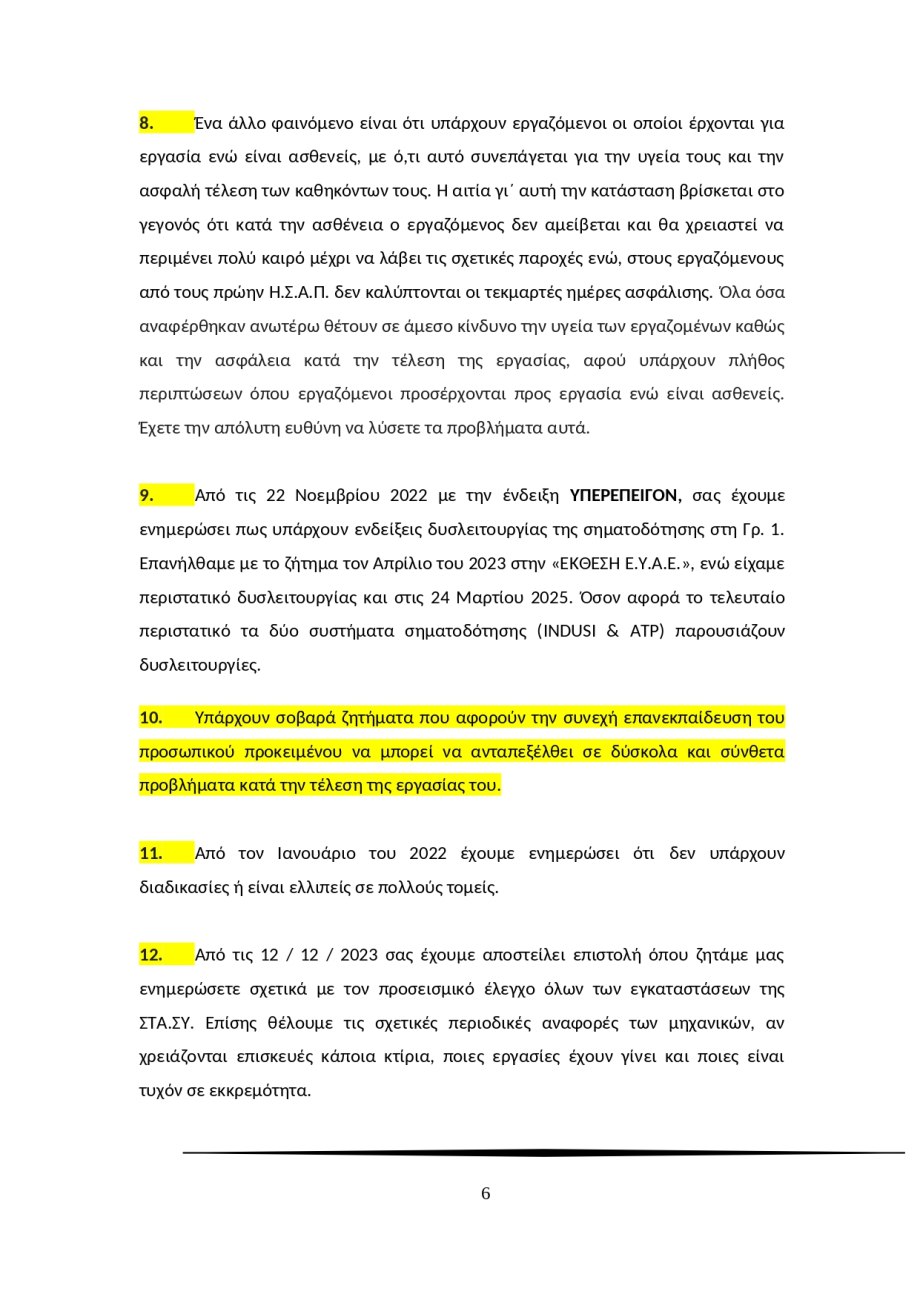 Η επιστολή προειδοποιούσε επίσης για τα ευέλικτα ωράρια και τις υπερωρίες που αυξάνουν δραματικά την πιθανότητα εργατικών ατυχημάτων: