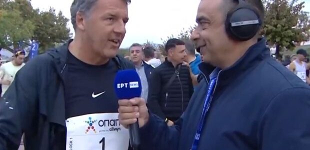 «Δεν είμαι καλός αθλητής αλλά ελπίζω να τερματίσω» είπε λίγο πριν ξεκινήσει τον μαραθώνιο ο κ. Ρέντσι λέγοντας «ευχαριστώ» στα ελληνικά.