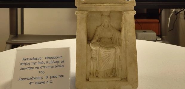 Στο πλαίσιο της έρευνας, εντοπίστηκε κρυμμένη σε πατάρι και κατασχέθηκε μια μαρμάρινη ναόσχημη αναθηματική στήλη (ένθρονη θεά Κυβέλη με ένα λιοντάρι δίπλα της), η οποία χρονολογείται στον 4ο π.Χ. αιώνα.