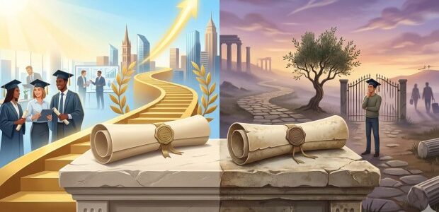 Για δεκαετίες, το πτυχίο τριτοβάθμιας εκπαίδευσης θεωρούνταν από την κοινωνία ως το απόλυτο εχέγγυο για επαγγελματική αποκατάσταση, κοινωνική ανέλιξη και οικονομική ασφάλεια.