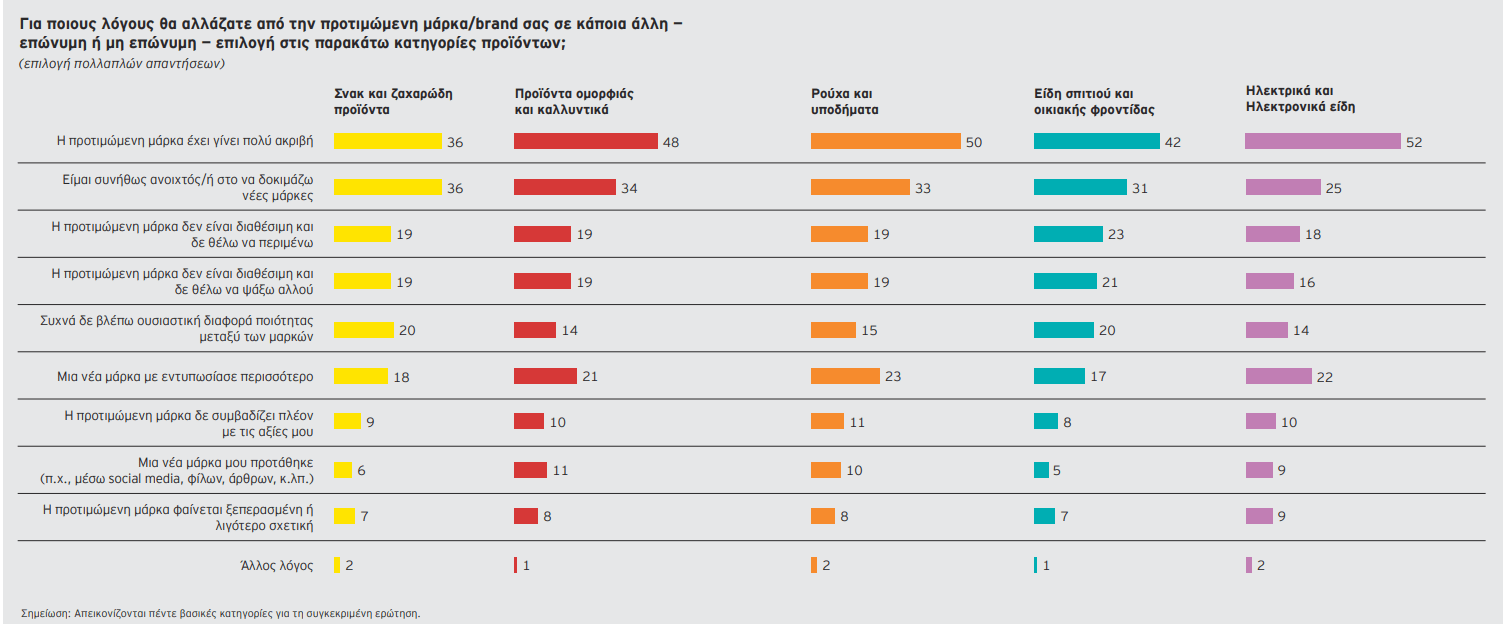 Ωστόσο, ένα σημαντικό ποσοστό (31%), δοκίμασαν τα προϊόντα ιδιωτικής ετικέτας, αλλά επέστρεψαν στα brands, εξισορροπώντας εν μέρει τη μετατόπιση αυτή.