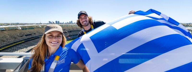Ο Στέφανος Τσιτσιπάς, η Μαρία Σάκκαρη και τα υπόλοιπα μέλη της εθνικής ομάδας, εκμεταλλεύτηκαν το ρεπό του Σαββάτου στο Περθ και περπάτησαν στην του Ozone Optus Stadium.