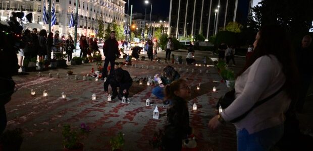 Βουλή: Ξανά πλήθος κόσμου μπροστά από το μνημείο των θυμάτων των Τεμπών