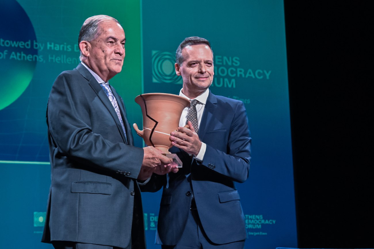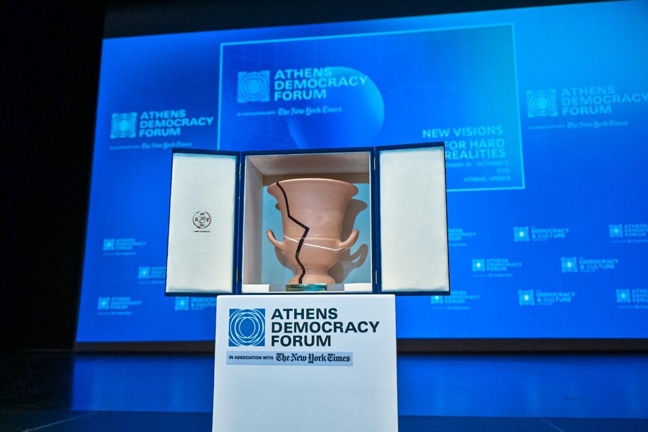 Η τελετή εντάσσεται στο πλαίσιο του Athens Democracy Forum, μιας διεθνούς «Αγοράς Ιδεών», που διεξάγεται στην Αθήνα από το Democracy and Culture Foundation, με τη συνεργασία του Δήμου Αθηναίων και των The New York Times.